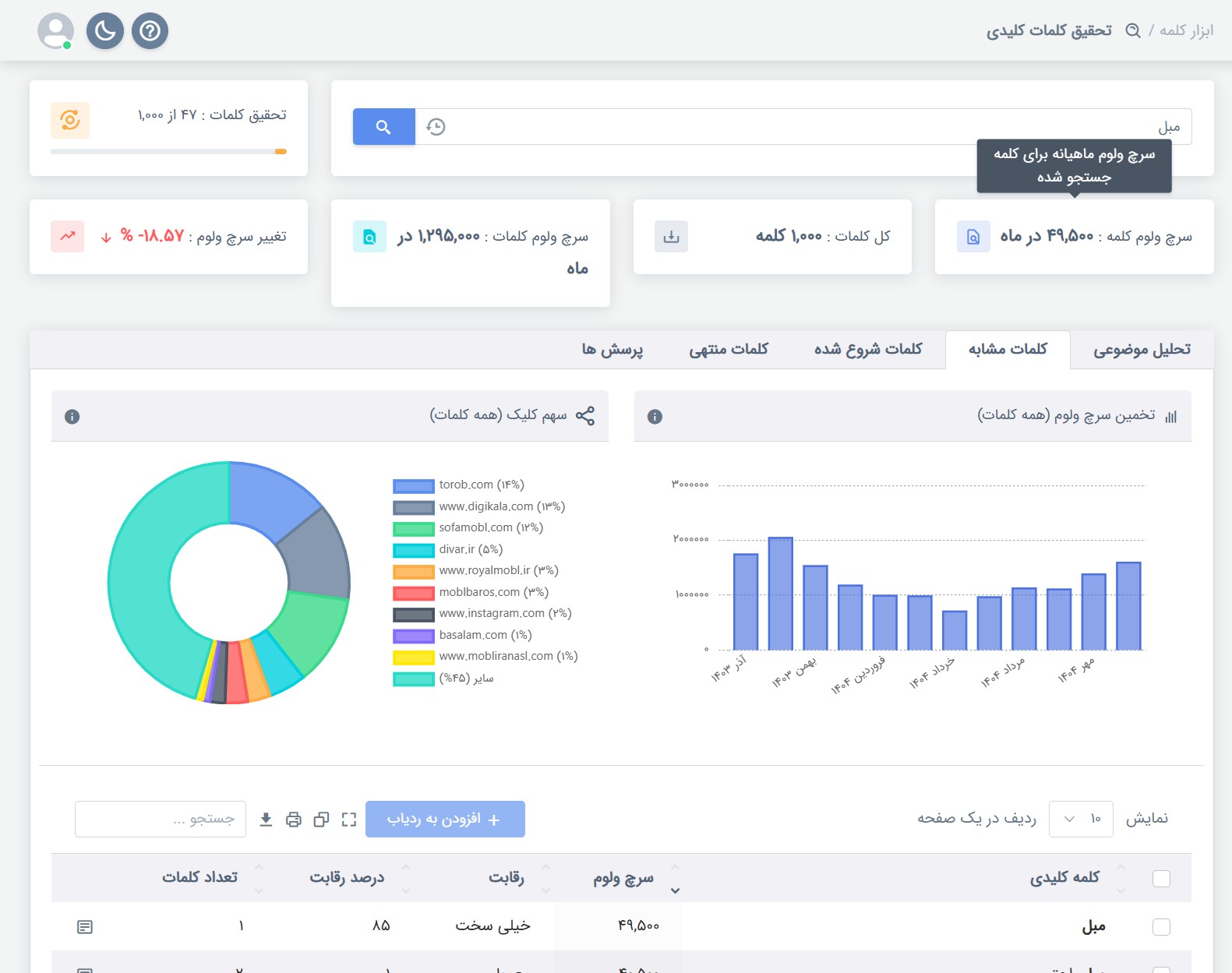 محصولاتی مانند مبل، میز ناهارخوری، تخت خواب، سرویس خواب و سایر اقلام مرتبط با مبلمان، هرکدام بهصورت مستقل بین ۵۰۰ هزار تا ۱ میلیون جستوجوی ماهانه در گوگل دارند. این حجم از تقاضای فعال نشان میدهد که بازار آنلاین مبلمان نهتنها زنده است، بلکه در حال رشد مداوم نیز هست.